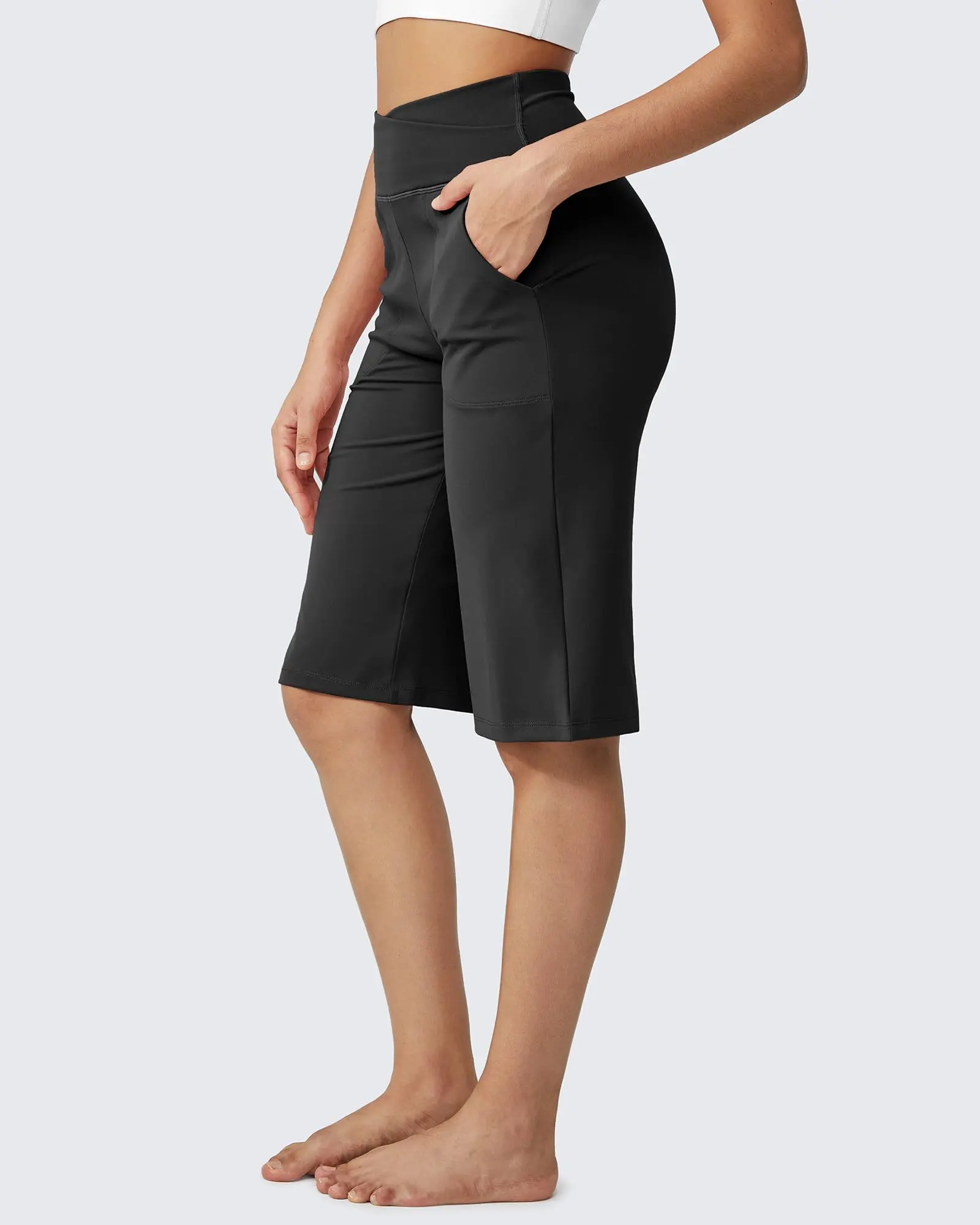 Stay comfortable and stylish with these loose high-waist cropped yoga pants shorts. Perfect for yoga, lounging, walking, or everyday wear.